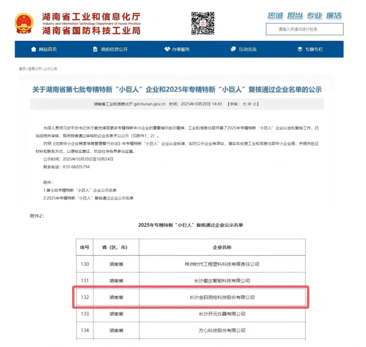 Sanayi ve Bilgi Teknolojileri Bakanlığı, Ekim 2025'te "İhtisaslaşmış, Rafine, Farklı ve Yenilikçi" sınıflandırması kapsamında 2025 yılı "Küçük Dev" işletmeler için inceleme sürecini tamamlayarak listeyi resmi olarak yayınladı. Kingmach Measurement & Monitoring Technology Co., Ltd, sıkı incelemeyi başarıyla geçti ve kalıcı inovasyon yeteneği, profesyonel teknik gücü ve istikrarlı pazar performansı sayesinde ulusal düzeydeki bu onuru yeniden kazandı.